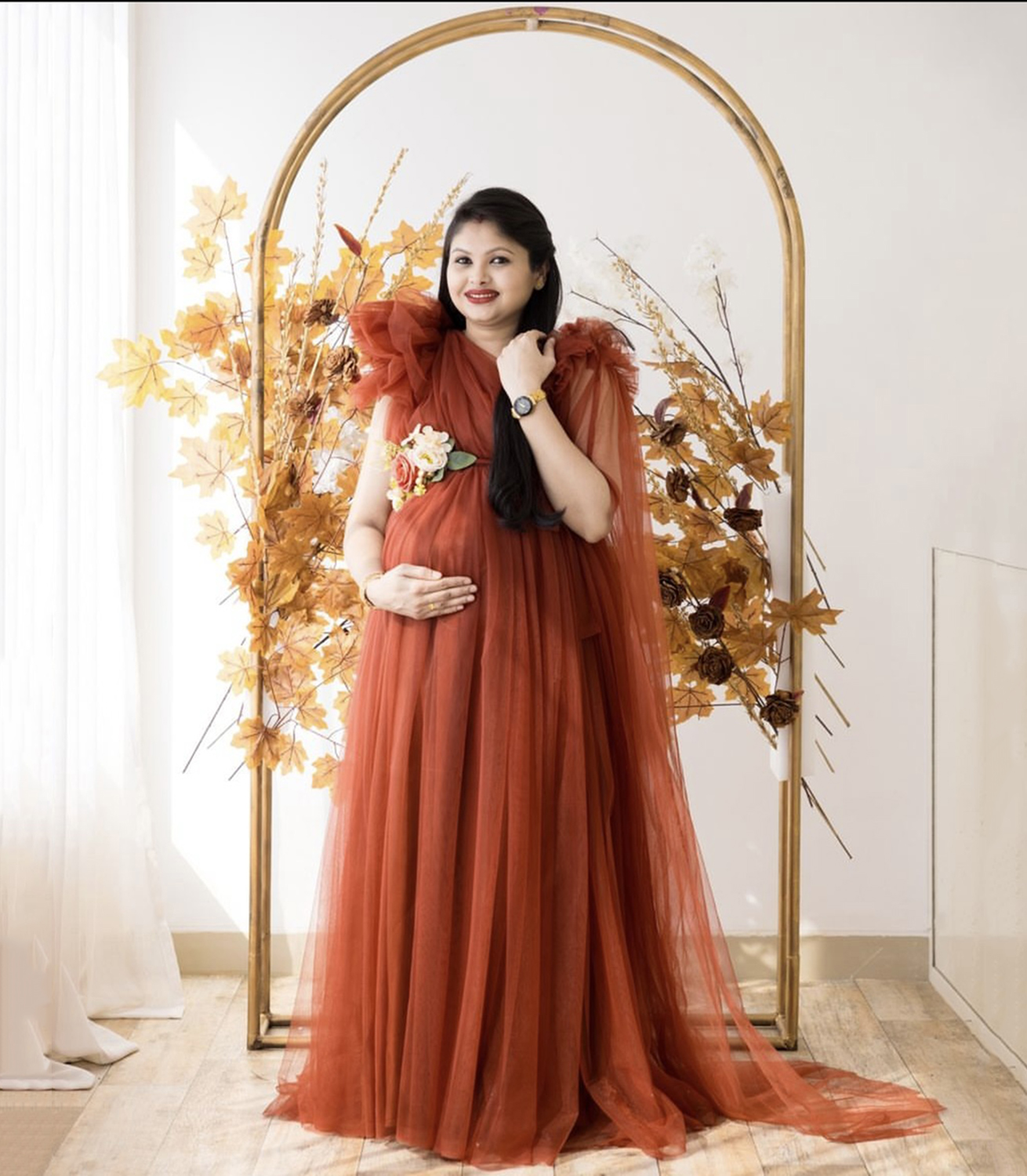 Whether it’s a maternity photoshoot, party, or celebration, this gown will ensure you look radiant and confident.