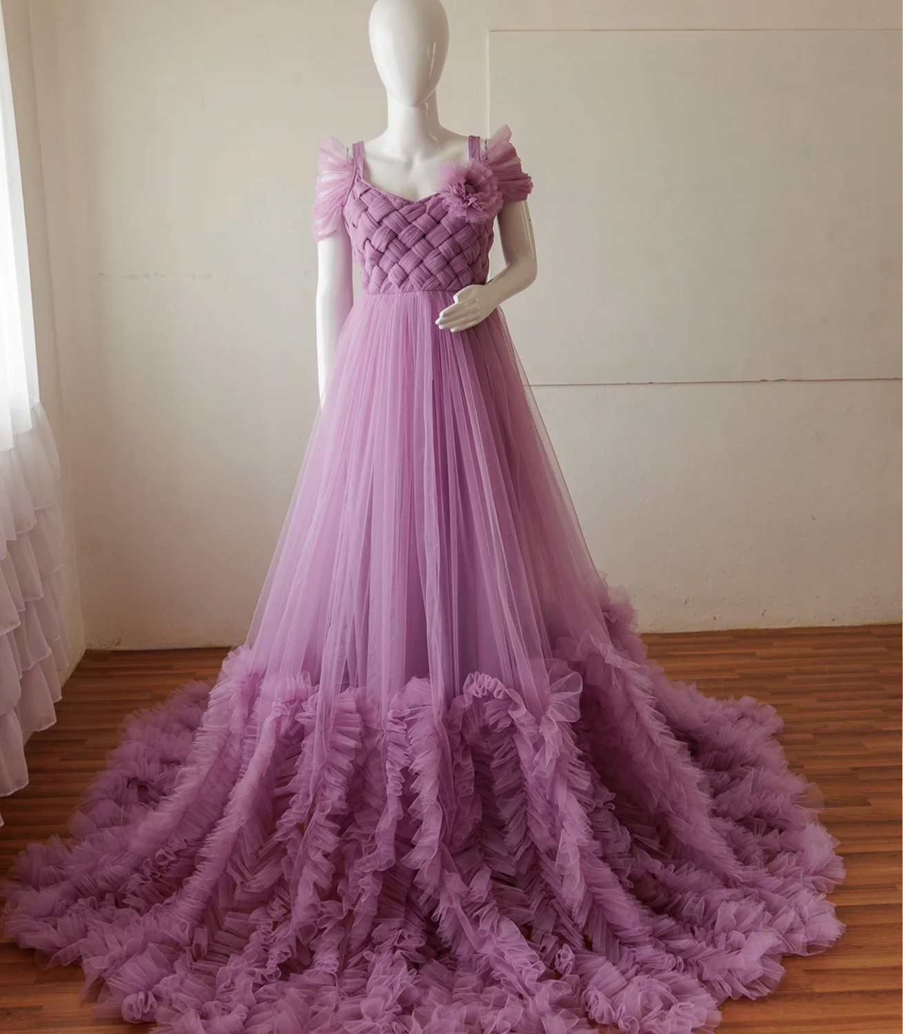 ❤️ The gentle lilac hue makes it a popular choice for pre-wedding gown rentals, maternity shoot gowns, and elegant evening dress hire.