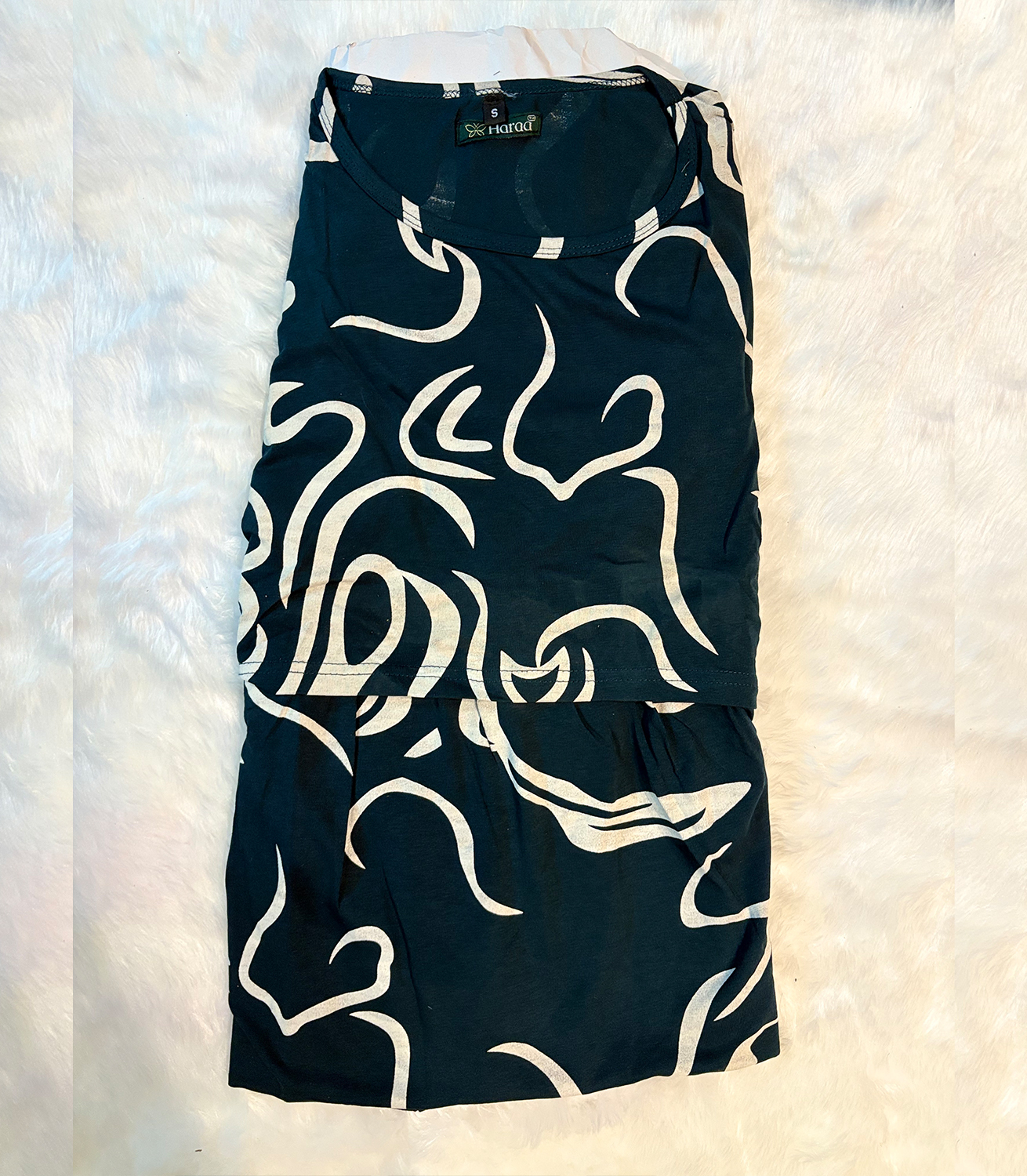 Chic meets cozy in this swirl-printed lounge dress. Soft, stylish, and relaxed – it’s your go-to for laid-back luxury at home.